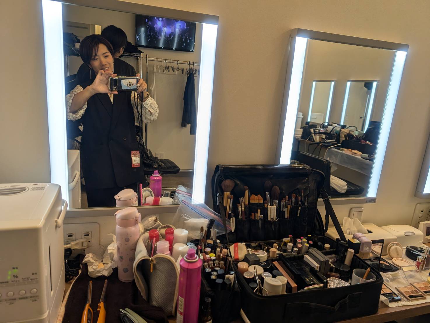 2回目の公演まで時間の無い中、メイクを直し、汗だくの髪を乾かして、ヘアスタイルをチェンジ。